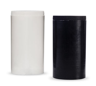 Product Description | Round Shaped Polypropylene Pot Jars available in Jet Black and Pure White Colours with Sprinkler Lids |